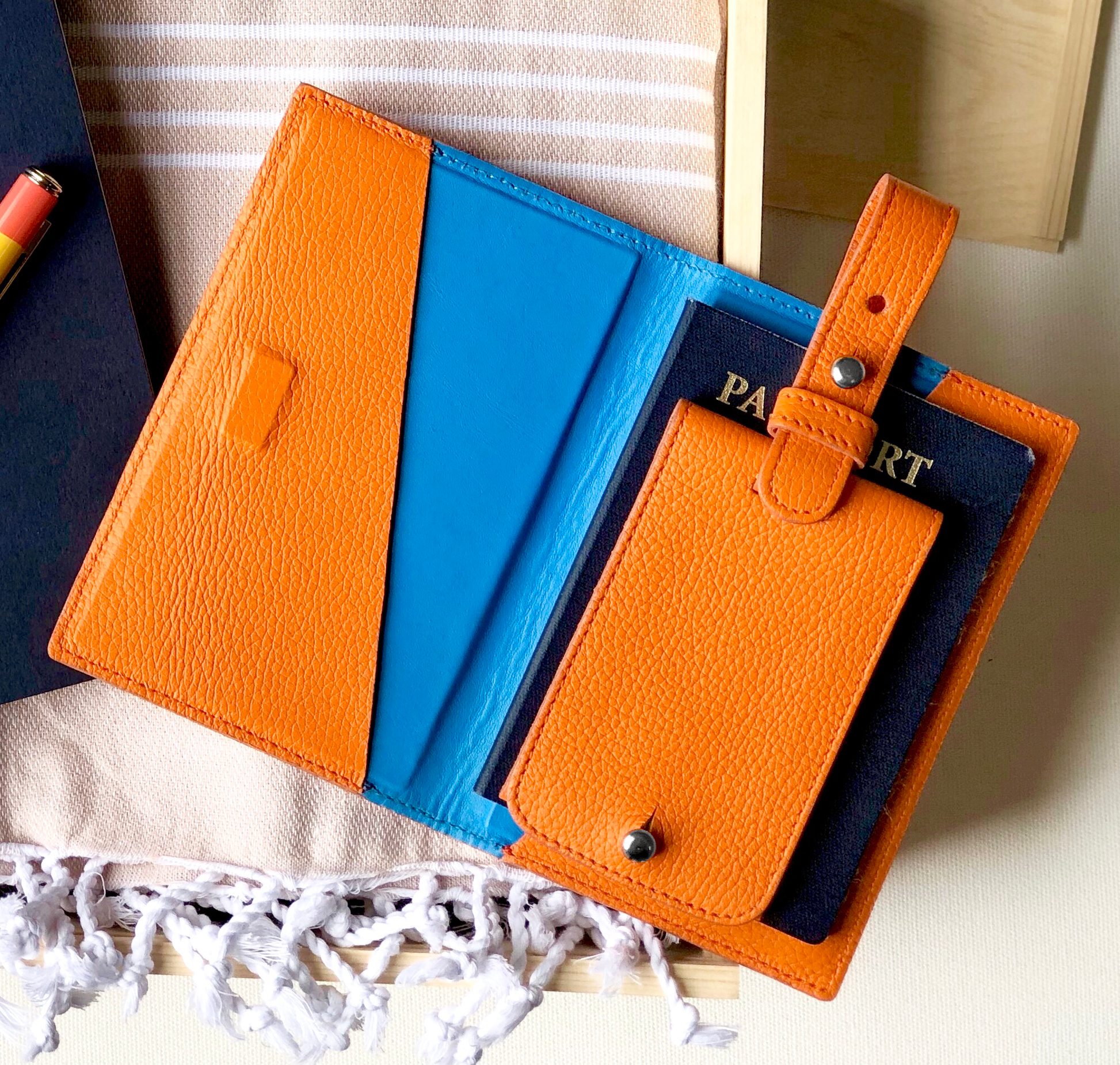 This personalized leather passport holder and luggage tag set is the perfect traveling companion. Choose from our wide range of leather colors to make spotting your luggage easy. The matching passport holder will keep credentials secure.